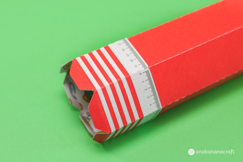 Vamos montar o corpo do lápis primeiro. Cole a cabeça com o corpo. Eu prefiro começar pela esquerda. Lembre de deixar as duas abas finais para o mesmo lado.